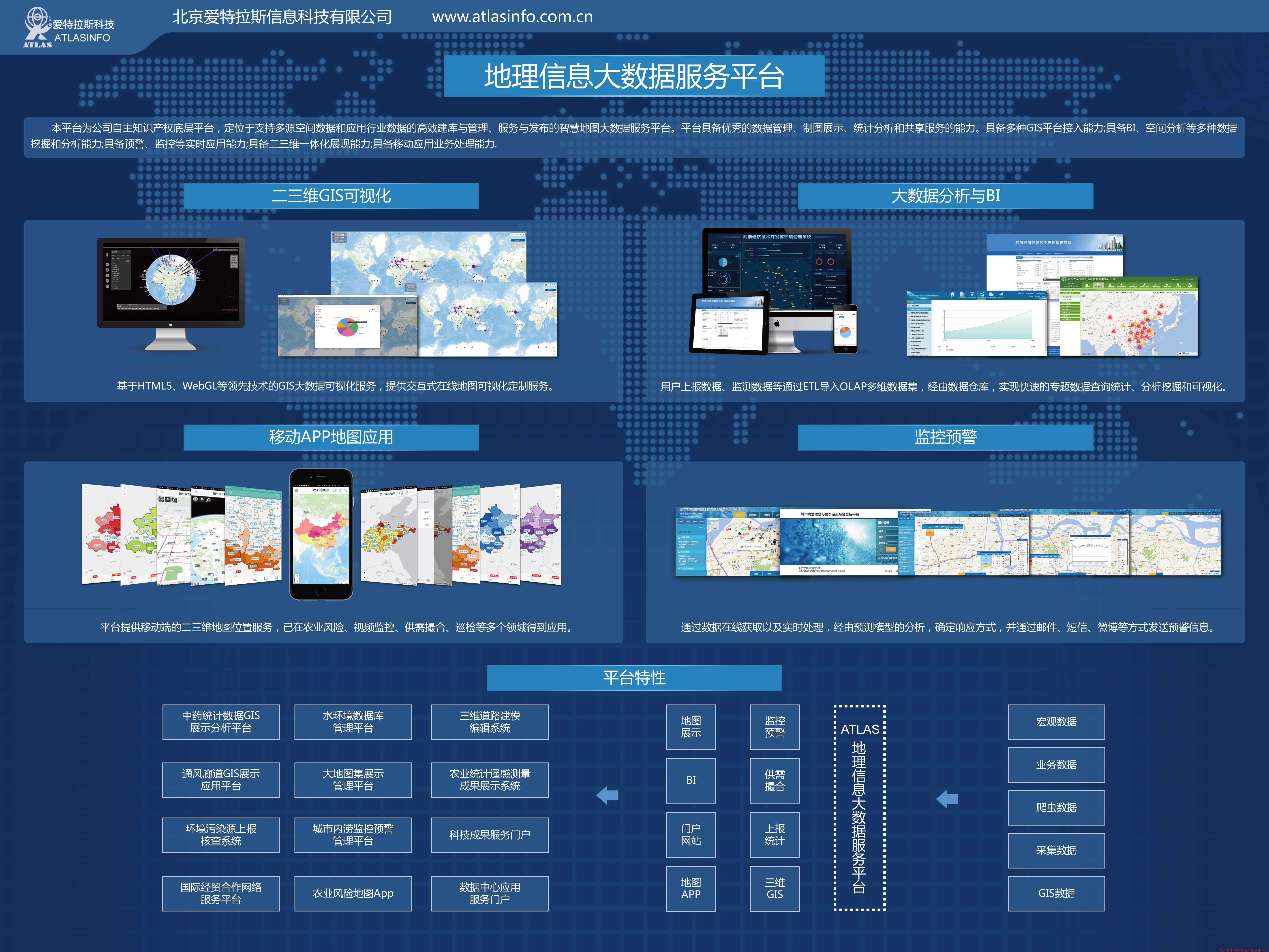 展會(huì )期間重點(diǎn)向參展客戶(hù)展示了我公司最新的地理信息大數據產(chǎn)品體系、遙感影像大數據處理與分析產(chǎn)品體系、地理信息大數據公共服務(wù)云平臺體系、環(huán)境遙感應急監測車(chē)等4類(lèi)大數據空間信息方向的技術(shù)和應用,與本次展會(huì )的主題相當切合,在展臺為參展的嘉賓和行業(yè)的工作者、學(xué)者展示我單位對于大數據空間信息的處理技術(shù)和應用能力。