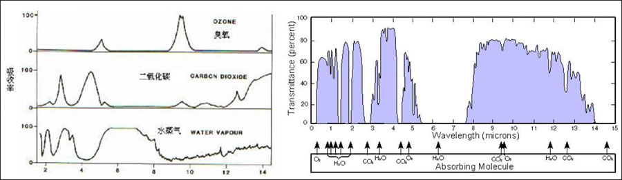 圖1 不同大氣成分的大氣窗口