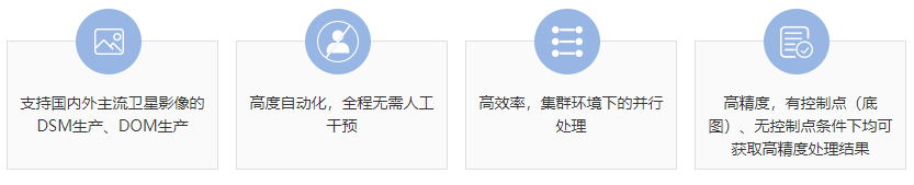 系統提供影像云檢、配準糾正、影像融合、真彩色轉換、勻色鑲嵌、裁切輸出、DSM自動(dòng)生成等常用算法模塊。