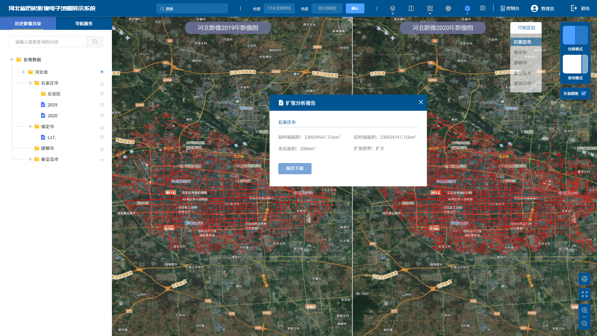 《河北省基礎測繪十四五規劃》中提出了“強化基礎測繪保障能力”、“提升地理信息公共服務(wù)能力”、“提升基礎測繪裝備水平和科技創(chuàng )新能力”等三大任務(wù)15項重點(diǎn)工程。2022年4月,北京愛(ài)特拉斯信息科技有限公司河北省第二測繪院啟動(dòng)了基于“天地圖”的河北省歷史遙感影像開(kāi)放(第一期)項目建設工作。我司自主研發(fā)的“河北省歷史影像電子地圖展示系統”對河北省全省范圍內2016年至2020年的歷史遙感影像資料進(jìn)行收集、分析、處理與融合,將河北省范圍內的歷史影像數據發(fā)布為地圖服務(wù)。本系統創(chuàng )新采用了動(dòng)態(tài)切片技術(shù)和歷史遙感影像智能解譯技術(shù),實(shí)現了地圖展示、圖層控制、卷簾對比、分屏對比、注記服務(wù)、地名地址查詢(xún)服務(wù)、路線(xiàn)導航等功能,供各級用戶(hù)使用;展示了河北省“十三五”期間地表變化情況,實(shí)現了歷史追溯與時(shí)空演變分析,進(jìn)一步消除信息孤島,為城市歷史變遷分析、地表變化監測提供了詳實(shí)可靠的服務(wù)。本項目于2022年12月順利通過(guò)了專(zhuān)家驗收。