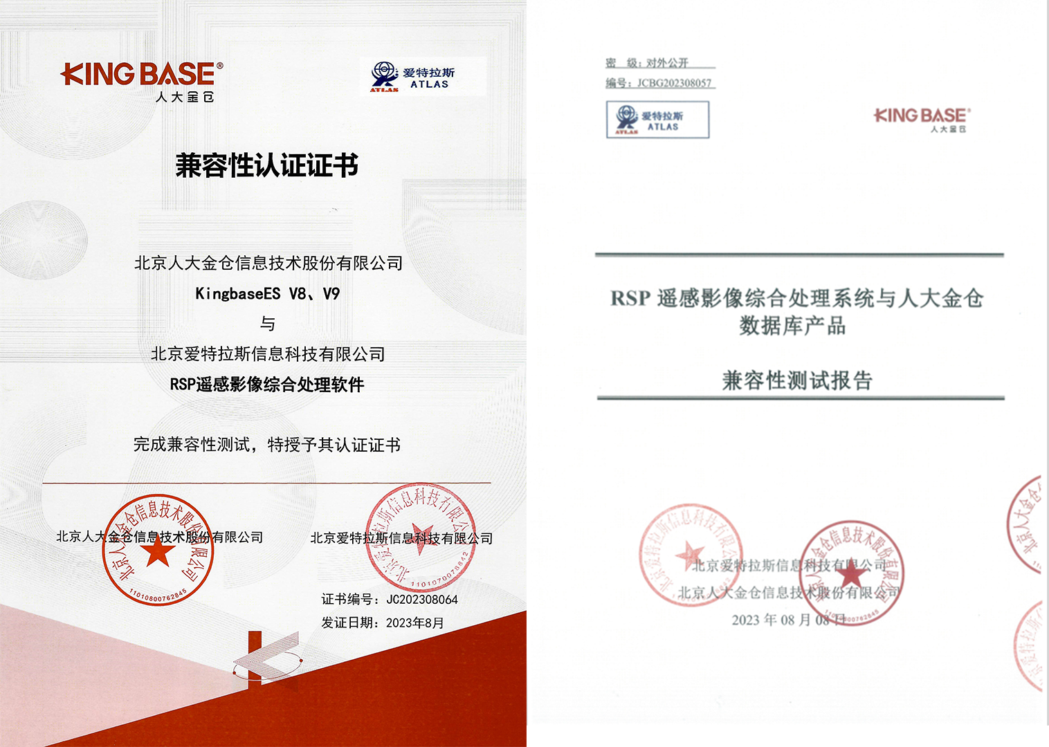 近日我司旗下自主研發(fā)產(chǎn)品ATLAS RSP遙感影像綜合處理軟件已成功完成北京人大金倉信息技術(shù)股份有限公司(以下簡(jiǎn)稱(chēng)"人大金倉”)自主研發(fā)的金倉數據庫管理系統 KingbaseESV8、V9完成兼容性認證,其功能、性能和兼容性等方面表現良好,運行穩定、安全。這是我司在國產(chǎn)化適配道路上邁出的重要一步。這也標志著(zhù)我們在國產(chǎn)自主技術(shù)創(chuàng )新和產(chǎn)品發(fā)展方面取得了巨大成就。